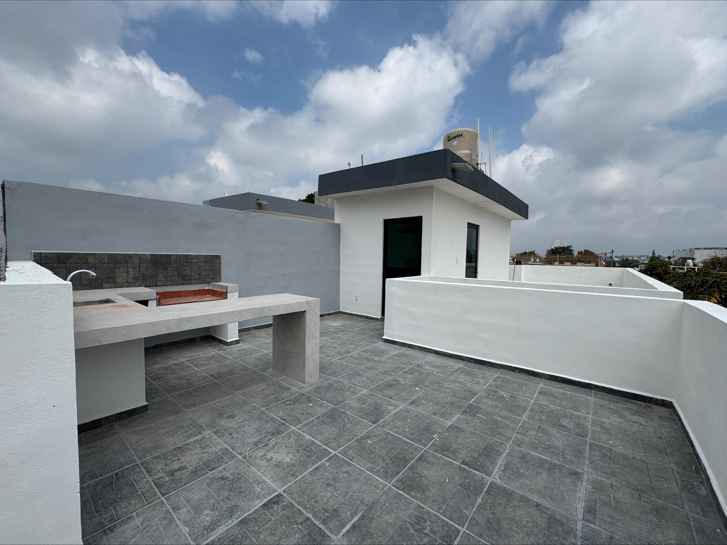 Moderna casa de tres plantas en preventa con excelente acabados, cuenta con cochera techada para dos autos, planta baja: área de sala comedor y cocina integral con concepto abierto, medio baño, área de lavado techada, en planta alta recamara principal con baño vestidor, dos recamaras secundarias con closet y ambas, comparten baño, en el tercer piso área de Roof Garden que cuenta con asador, tarja, barra desayunadora y un medio baño. TRES CASAS DISPONIBLES