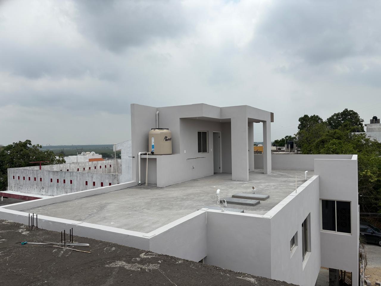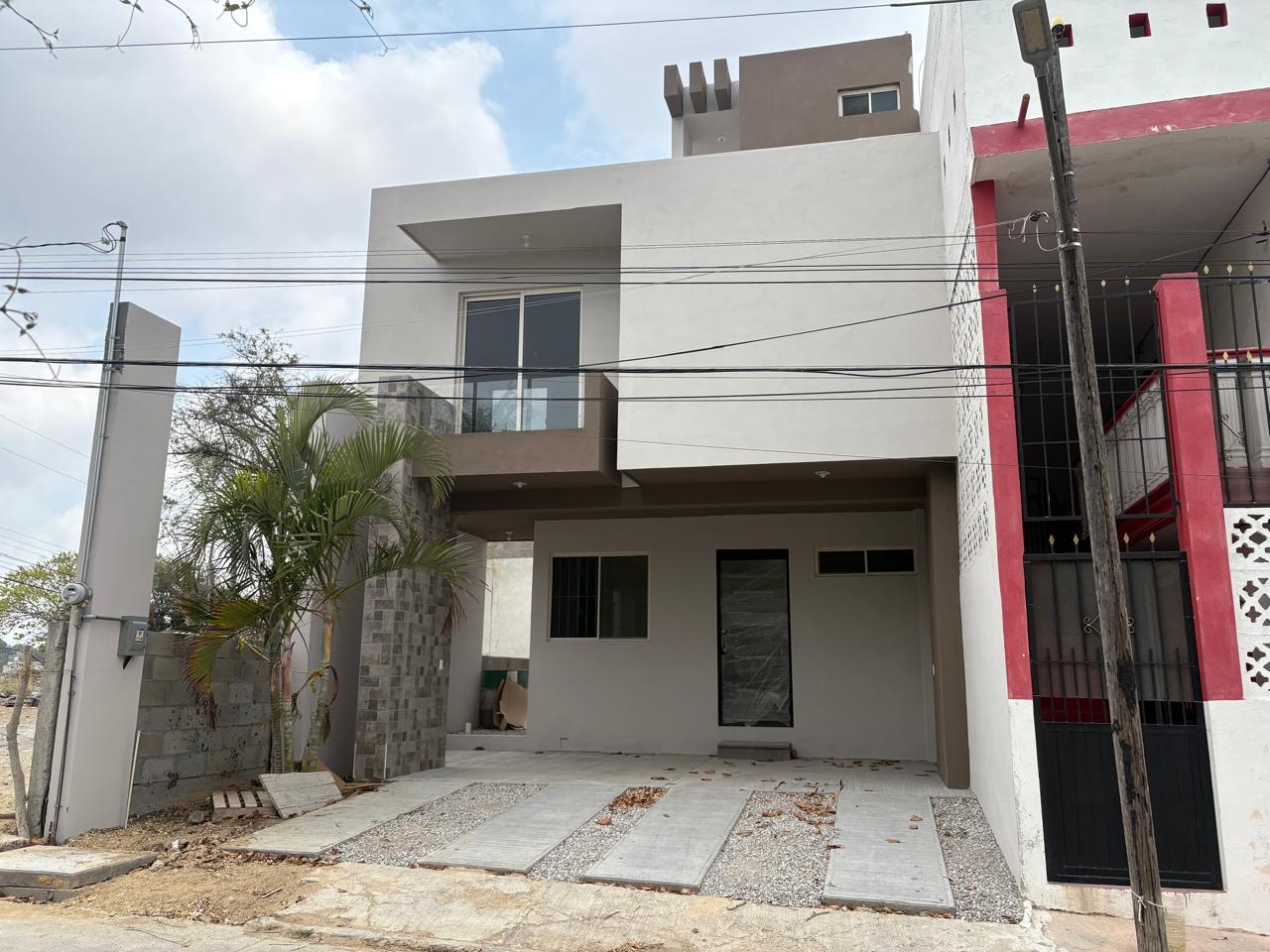 Moderna casa de tres niveles cuenta con sala, comedor, cocina integral, área de lavado en segundo piso, recamara principal con baño vestidor y balcón y en tercer nivel amplio Roof Garden con baño.