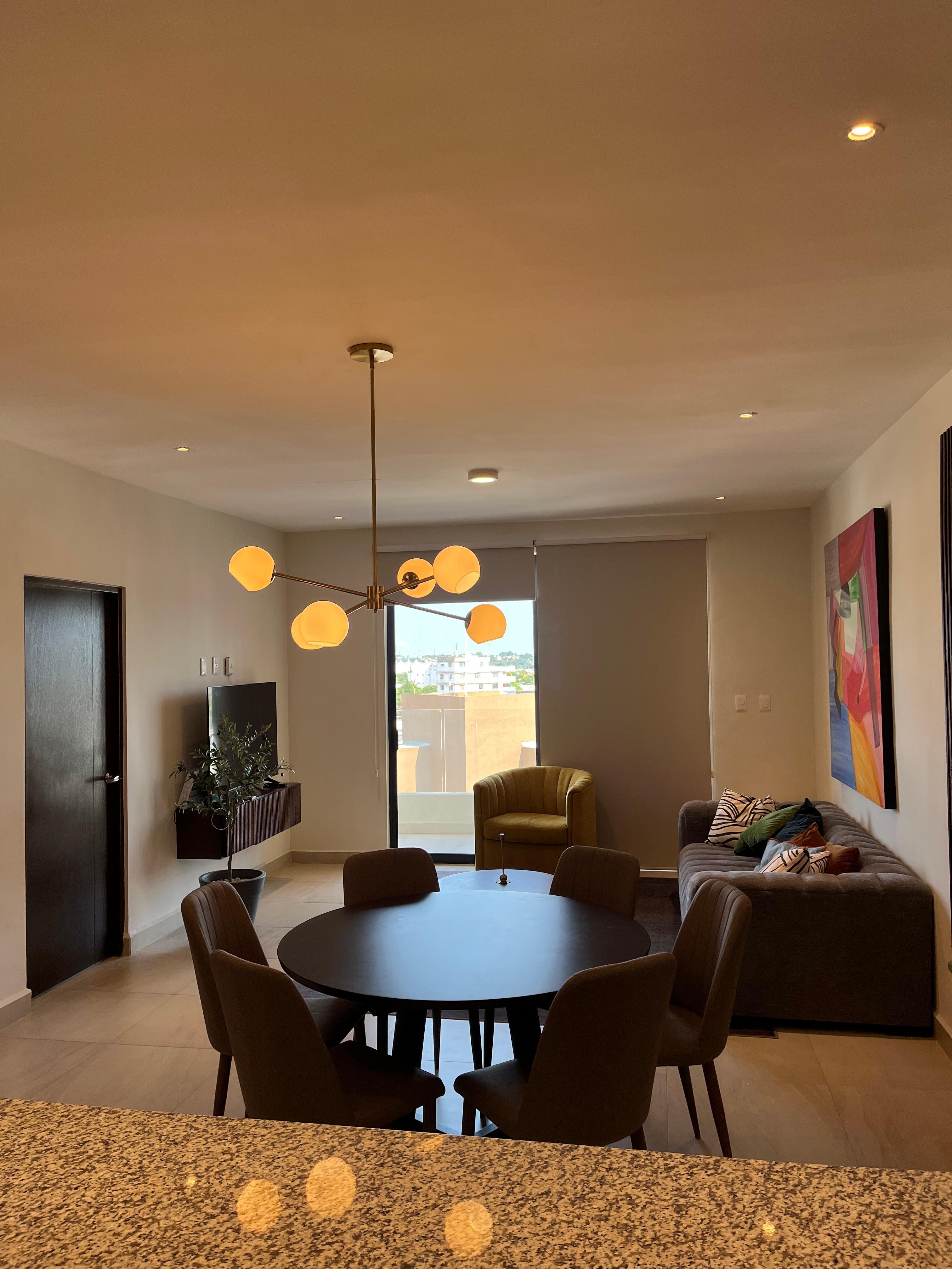 Moderno y exclusivo departamento amueblado en venta, en zona privilegiada de Tampico, muy cerca de la zona centro. Consta de 3 recámaras, en la principal cuenta con baño completo, sala, comedor, cocina integral, área de lavandería y roof garden. Se ubica en el tercer nivel de la torre Hidalgo.