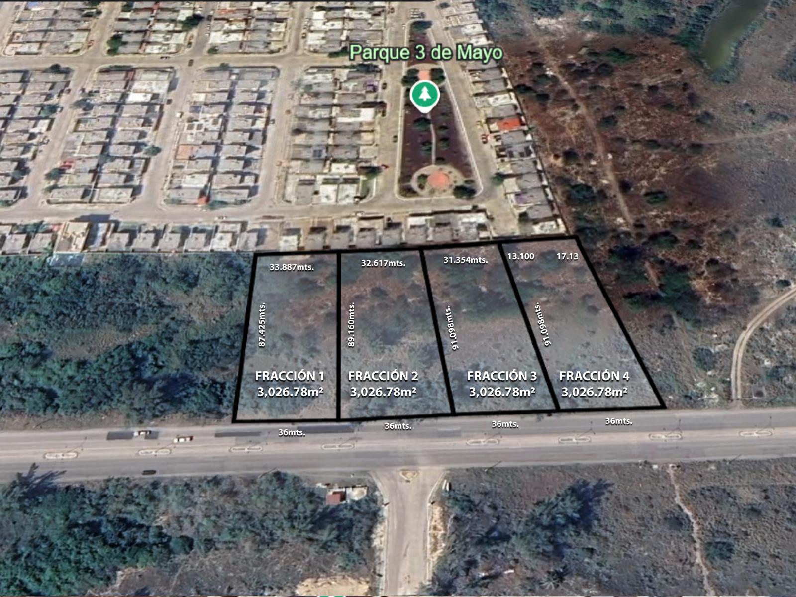 Cuatro lotes en renta, ideal para patios de maniobras, para empresas del Puerto Industrial de Altamira ubicados sobre el corredor Urbano Luis Donaldo Colosio. 4 lotes de 3,026.78 m2 cada uno Se rentan juntos.