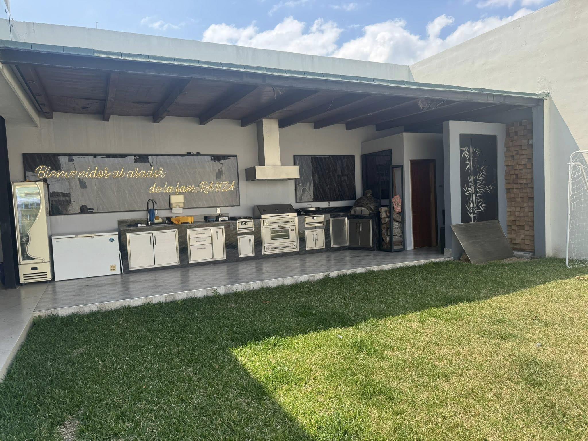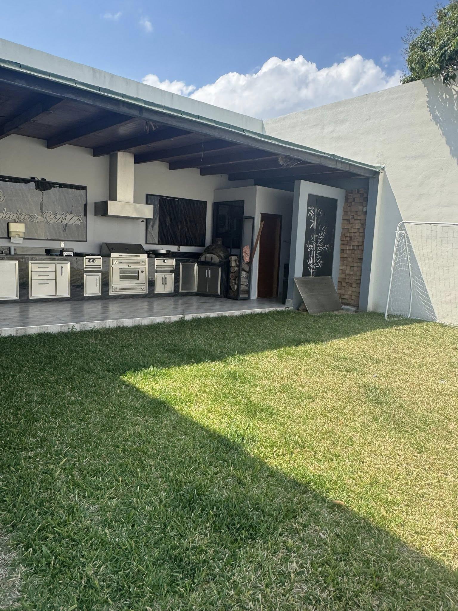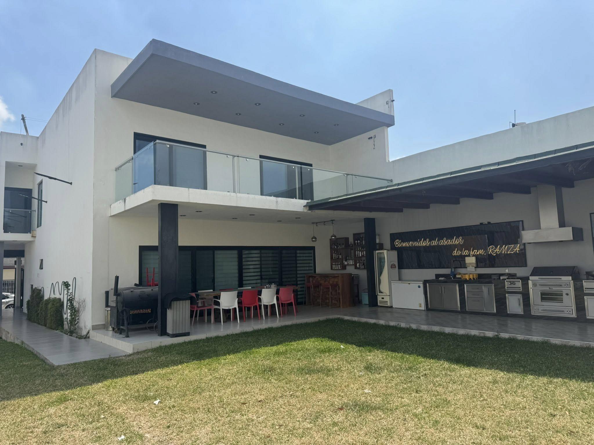 Bonita casa, con jardín y área social, acabados de lujo, madera de parota en todas las puertas y closets, venecianos premium, cristal templado, 3 récamaras cada una con baño, cuarto de juegos o TV, cuarto de servicio con baño, bodegas, área de servicio y cochera para 3 autos grandes
