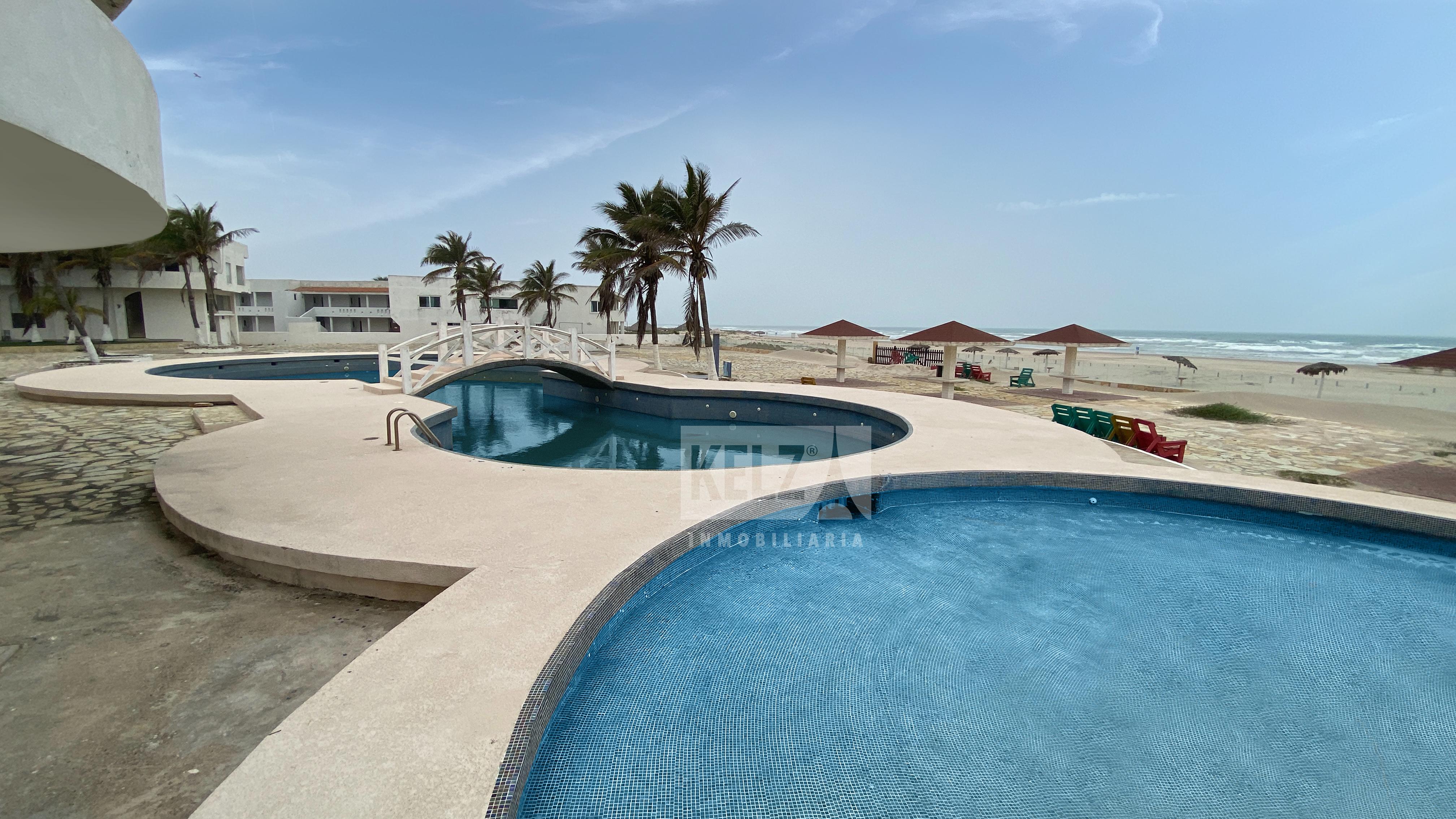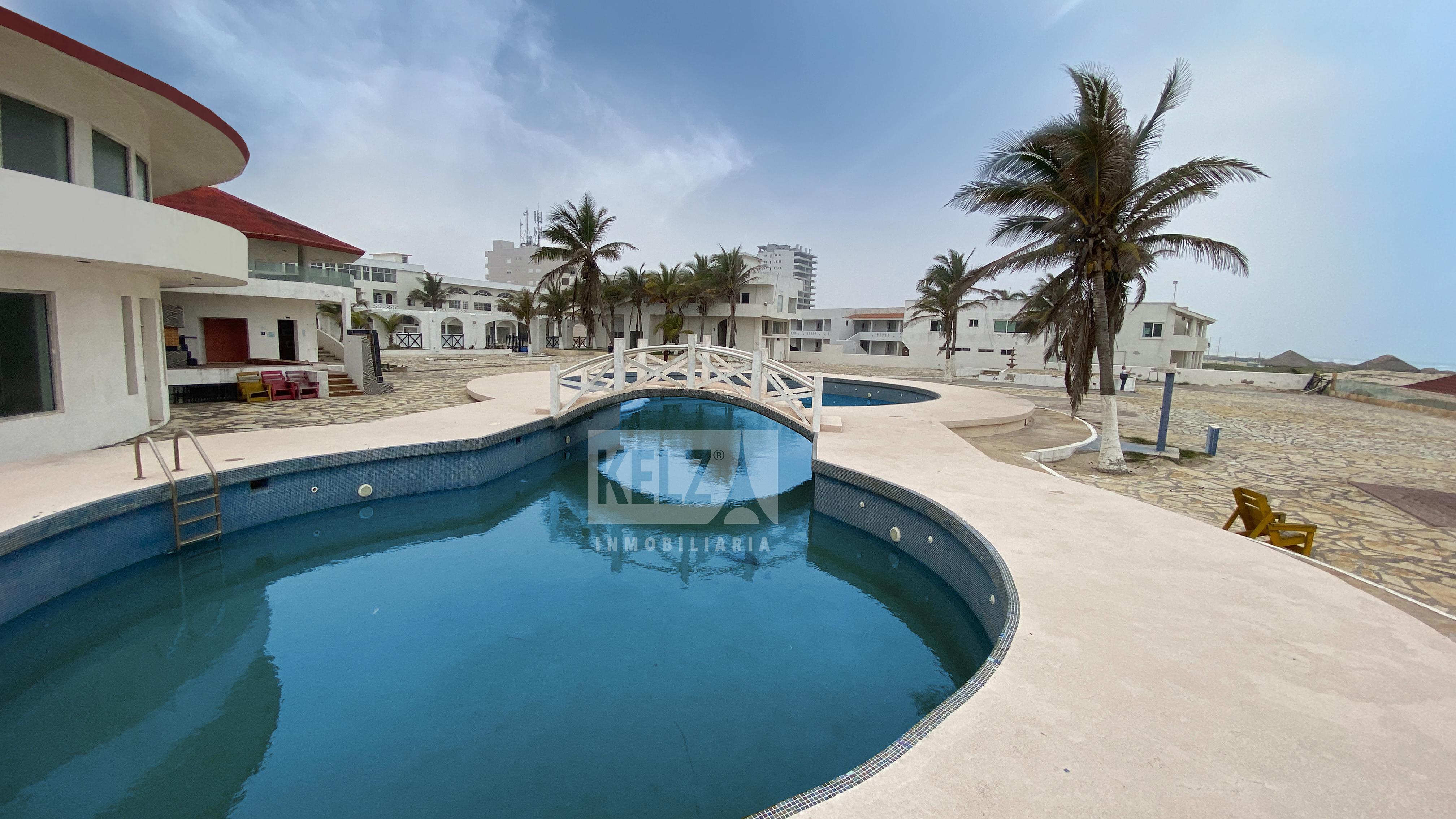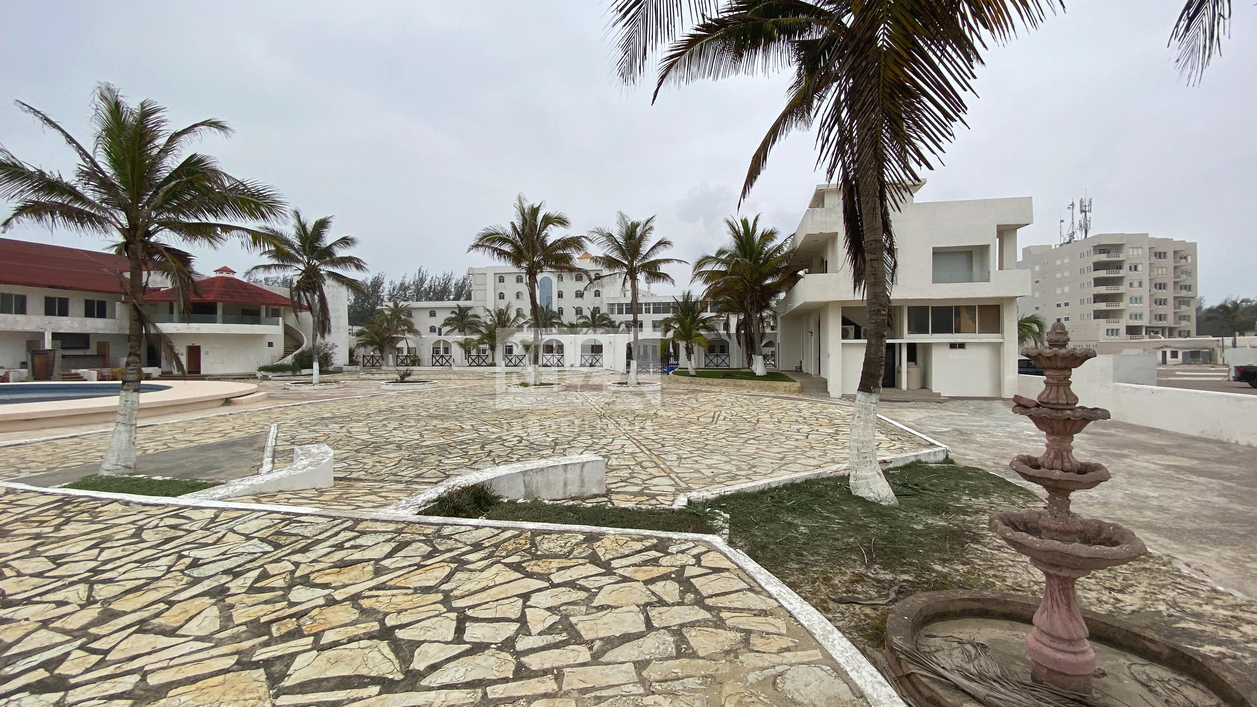 Hotel Playa Miramar, localizado en un punto privilegiado del malecón costero que se destaca por una hermosa playa con certificación blue flag donde se puede disfrutar de las bondades de la zona rodeado de lujo y comodidad. El hotel Dona Juana Cecilia Miramar se ubica en Ciudad Madero, frente a la Playa Miramar; hotel se encuentra a 4.2 km del parque Bicentenario de Cd. Madero, a 7 Km del estadio Tamaulipas y a 9 Km del Espacio Cultural Metropolitano a unos 15 minutos del aeropuerto, 25 minutos del centro histórico de Tampico, a unos 20 minutos del teatro metropolitano y a 15 minutos del parque industrial de Altamira. Así como distintos lugares de interés como el malecón, el museo de la historia de Tampico, la Aduana Marítima y la Plaza de Armas. VIAS DE COMUNICACION E IMPORTANCIA: SE ACCESA POR LA AVE. ALVARO OBREGON Y AVE. TAMAULIPAS. Esta propiedad esta conformada por dos predios Elo Hotel y El Club de Playa con una extensión total de: - 17,695.9 mts de Terreno - 12,795.38 mts de Construcción La parte del Hotel cuenta con: - Hotel - Acceso al estacionamiento - Caseta de acceso - Elevador - 100 habitaciones con baño cada una - Área de lobby - Área de Recepción - Área de Restauran - Área de palapa o bar - Alberca al aire libre - Foro para eventos - Áreas recreativas como dos canchas de futbol - Salón para eventos -Vestidores -Baños - Área de oficinas -Área de bodega -Lavandería -Cuarto de maquinas - 11, 646.44 m2 de superficie total del terreno - 87 metros de frente sobre Blv. costero CLUB DE PLAYA - Ofrece club de playa con acceso directo al mar, piscina exterior con piscina infantil - Playa privada - Baños - 3 salones de eventos -Palapa en el segundo piso para eventos - 5 habitaciones - Foro para eventos - 6,049.46 mts de terreno - 84.15 mts con playa miramar - 64.15 sobre el blvd. Costero. SERVICIOS PUBLICO Y EQUIPO URBANO Abastecimiento de agua potable mediante tomas domiciliarias, drenaje y alcantarillado separado, red electrificación aérea con posteriza de concreto, alumbrado publico con lamparas de yodo y sodio, red telefónica área con posteria de concreto y calle de concreto hidráulico, transformador de 300 KVA